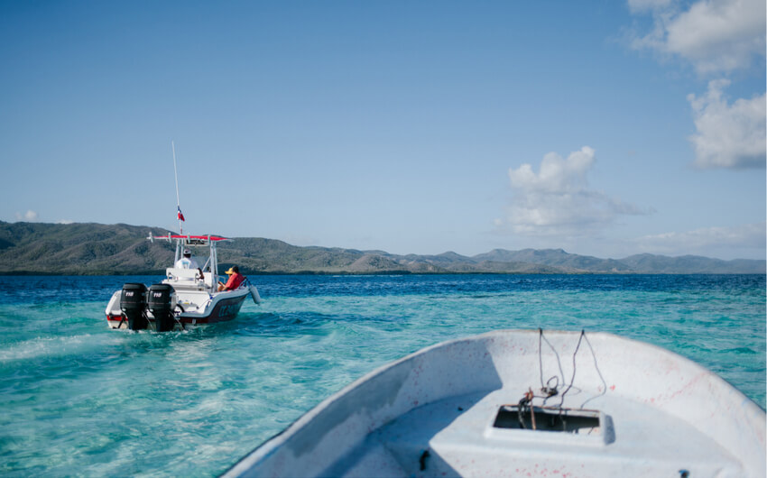 That last is no more than a foot high, and about seven paces across, a mere flat top of a grey rock which smokes like a hot cinder after a shower, and where no man would care to venture a naked sole before sunset. On the Little Isabel an old ragged palm, with a thick bulging trunk rough with spines, a very witch amongst palm trees, rustles a dismal bunch of dead leaves above the coarse sand.